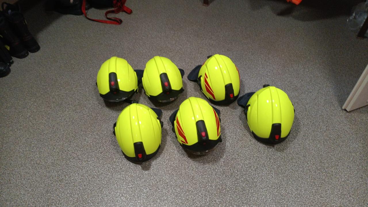 Díky dotaci z programu KV Kraje bylo pořízeno 6ks luminiscenčních přileb a 6ks integrovaných LED svítilen pro naší výjezdovou jednotku SDH Plesná.